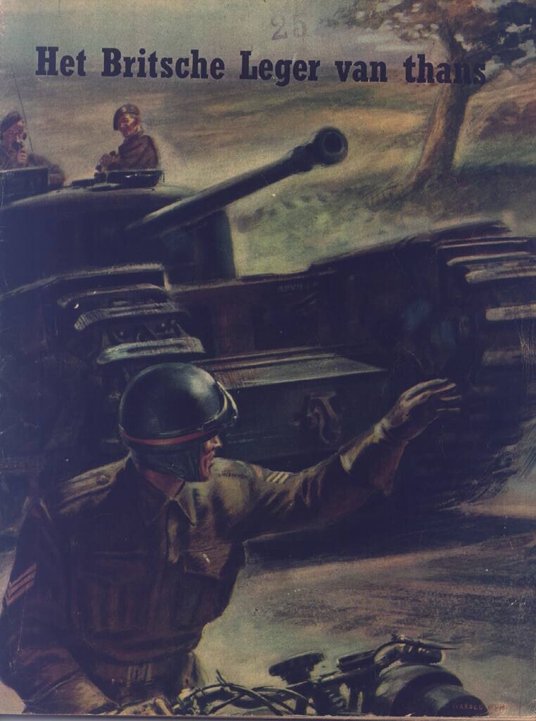 Nederlandstalige uitgave "Het Britsche leger van thans" met illustraties in zwartwit en kleur. het boekje geeft informatie over de verschillende legeronderdelen en hun taken en telt 64 pagina's.