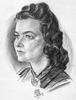 Mieneke Poons (?), schouderstuk en trois quart naar links. Ze draagt een lint om de hals met daaraan een medaillon (?).