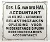 Dit emaillen muurbord van accountant Drs. I.G. van der Hal (Den Haag 1911 - Sobibor 1943) werd in 2013 gevonden onder de vloer van zijn voormalige woning aan de Deurloostraat 2-I in Amsterdam.
