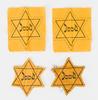 Vier Jodensterren, twee gevoerde en gebruikte en twee ongebruikte niet uitgeknipte exemplaren.