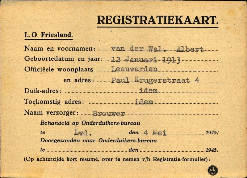 Onderduikinschrijving van Albert van der Wal