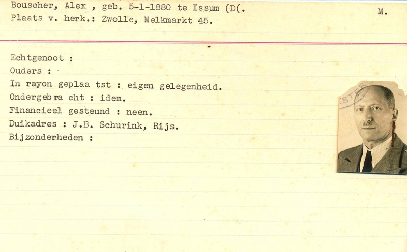 Onderduikinschrijving van Alex Bouscher