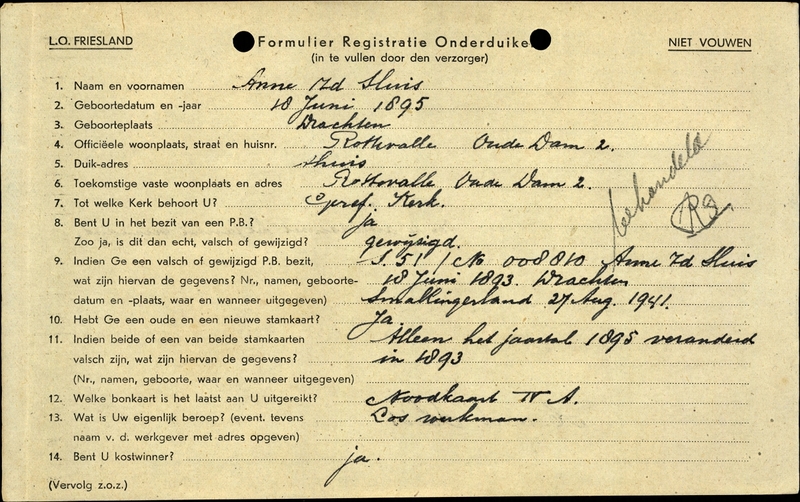 Onderduikinschrijving van Anne v.d. Sluis