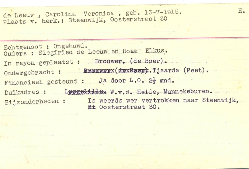 Onderduikinschrijving van Carolina Veronica de Leeuw