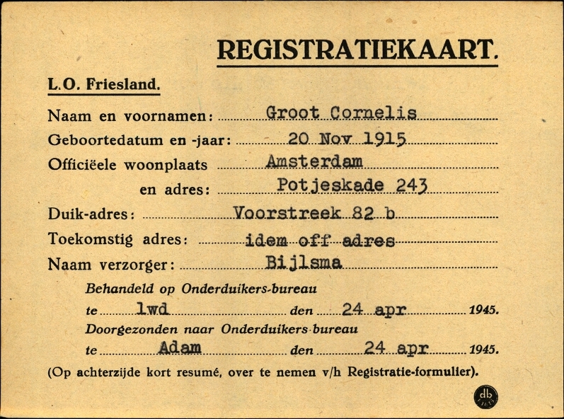 Onderduikinschrijving van Cornelis Groot