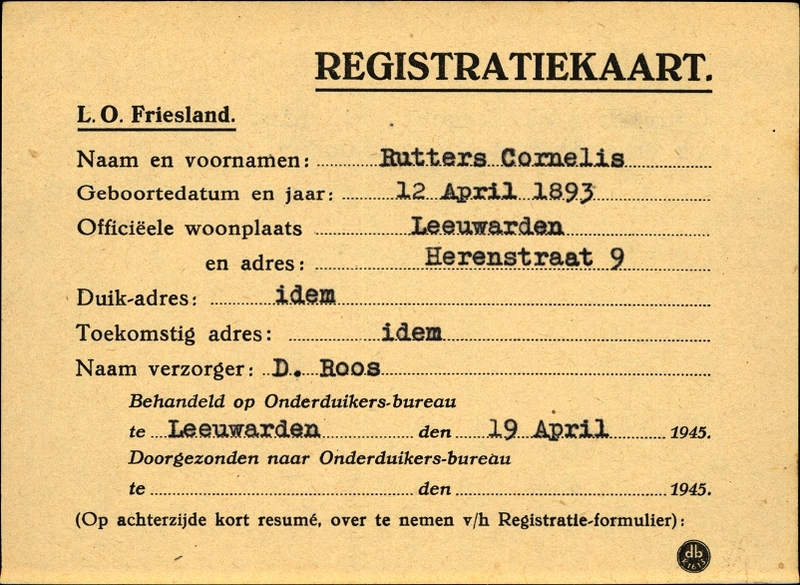 Duikadres: Heerestraat 9, Leeuwarden - Oorspronkelijk adres: Heerestraat 9, Leeuwarden - Reden onderduik: anderszins - Overige opmerkingen: Achterkant bijzonderheden: Reden onderduik: wil niet meer werken voor de Duitsers en dook onder. - Achterkant beroep: werkloos melkknecht