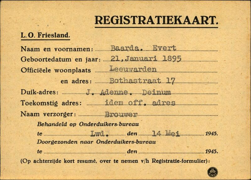 Onderduikinschrijving van Evert Baarda