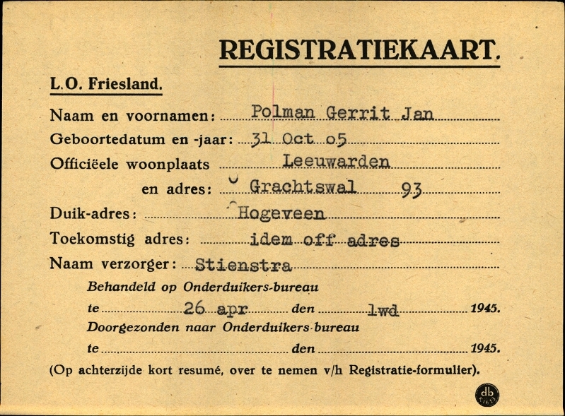 Onderduikinschrijving van Gerrit Jan Polman