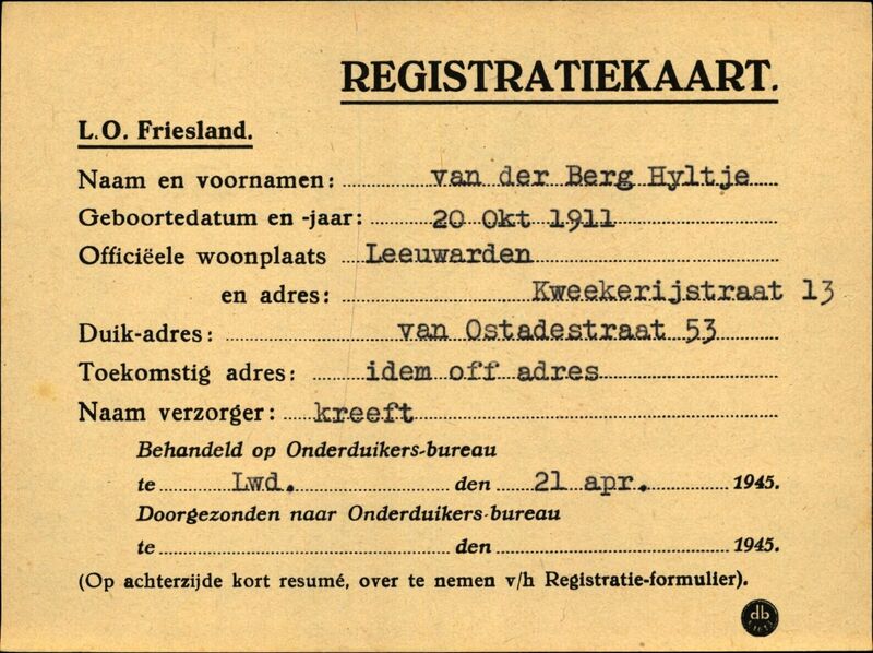Onderduikinschrijving van Hyltje van der Berg