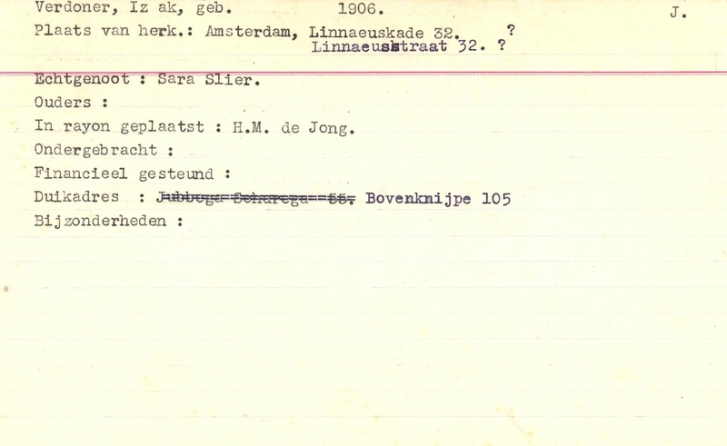 Onderduikinschrijving van Izak Verdoner