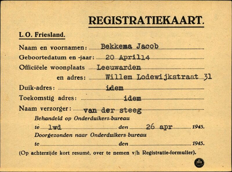 Onderduikinschrijving van Jacob Bekkema