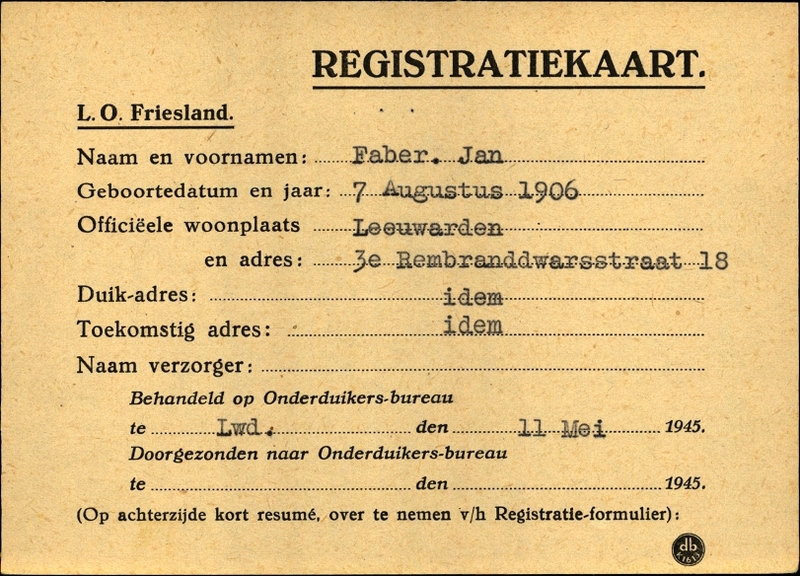 Onderduikinschrijving van Jan Faber - Oorlogsbronnen.nl