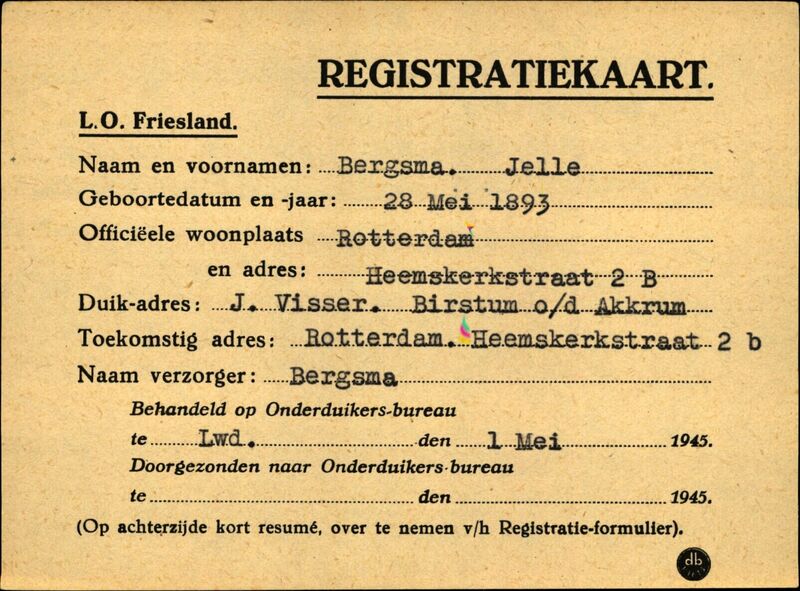 Onderduikinschrijving van Jelle Bergsma