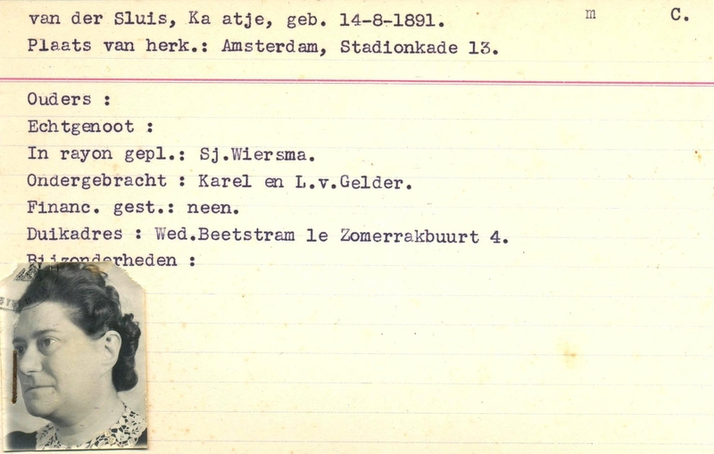 Onderduikinschrijving van Kaatje van der Sluis