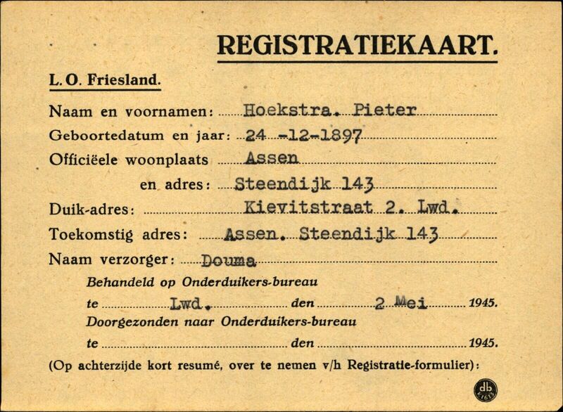 Onderduikinschrijving van Pieter Hoekstra