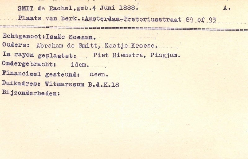 Duikadres: Buiten de Kom 18, Witmarsum - Oorspronkelijk adres: Pretoriusstraat 89 of 93, Amsterdam