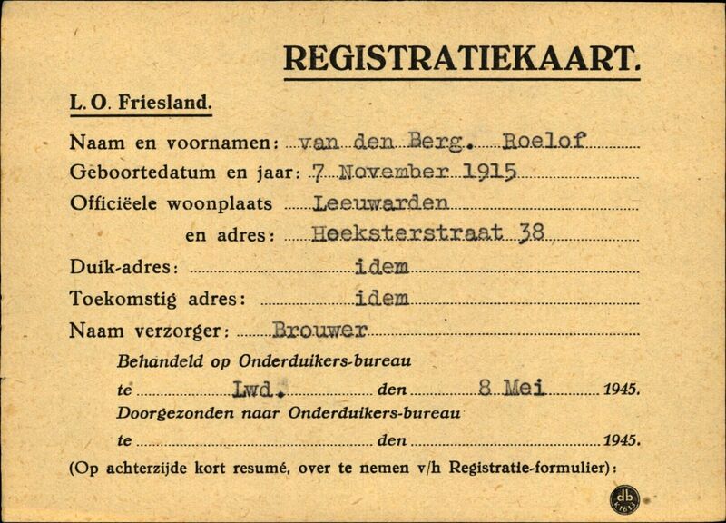 Duikadres: Hoeksterstraat 38, Leeuwarden - Oorspronkelijk adres: Hoeksterstraat 38, Leeuwarden - Reden onderduik: staking - Overige opmerkingen: Achterkant bijzonderheden: Werkzaam geweest als arbeider bij NS. - Ondergedoken wegens spoorwegstaking. - Gewijzigd PB. - Achterkant beroep: Arbeider - Achterkant naam werkgever: N.S.