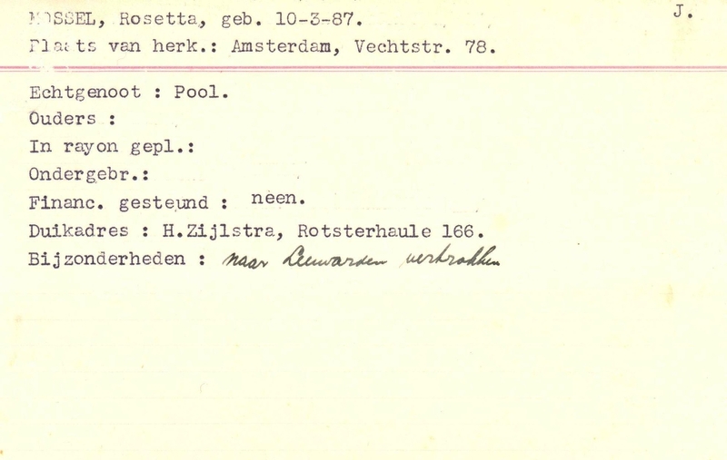 Duikadres: 166, Rotsterhaule - Oorspronkelijk adres: Vechtstraat 78, Amsterdam - Overige opmerkingen: Bijzonderheden: naar Leeuwarden vertrokken
