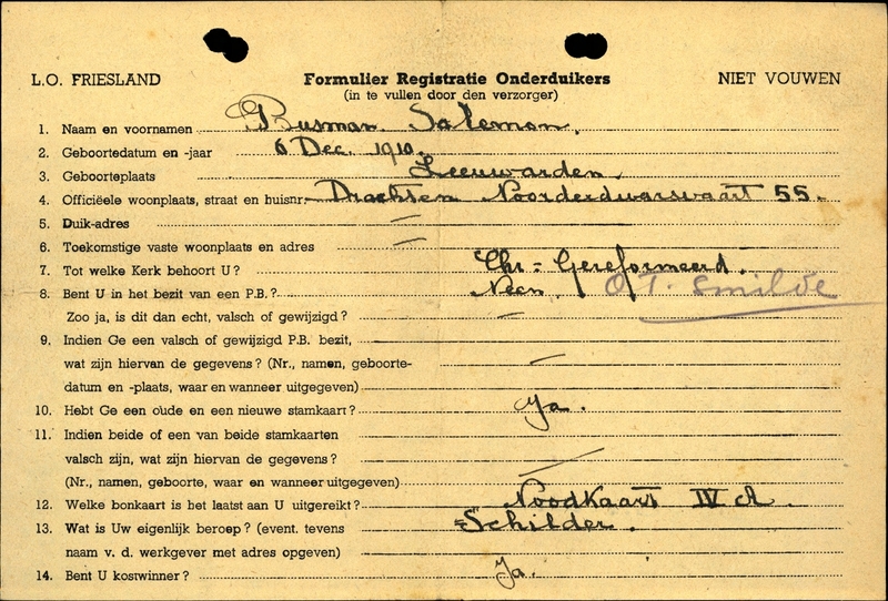 Onderduikinschrijving van Salemon Busman