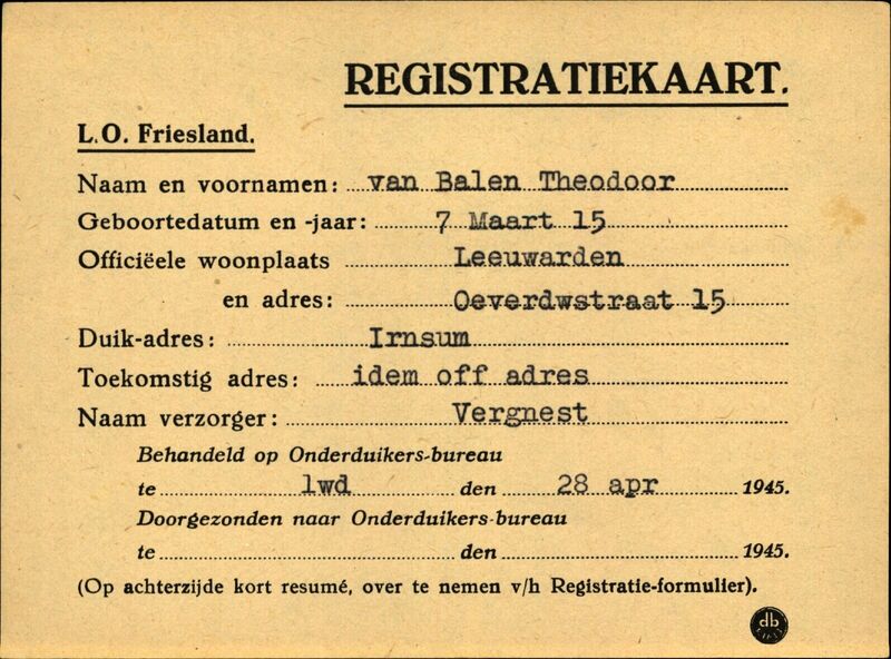 Onderduikinschrijving van Theodoor van Balen