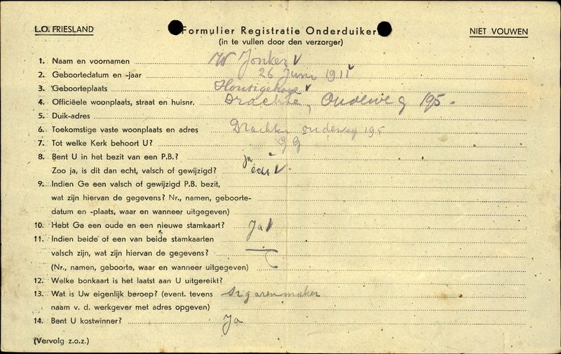- Oorspronkelijk adres: Oudeweg 195, Drachten - Reden onderduik: arbeidsinzet