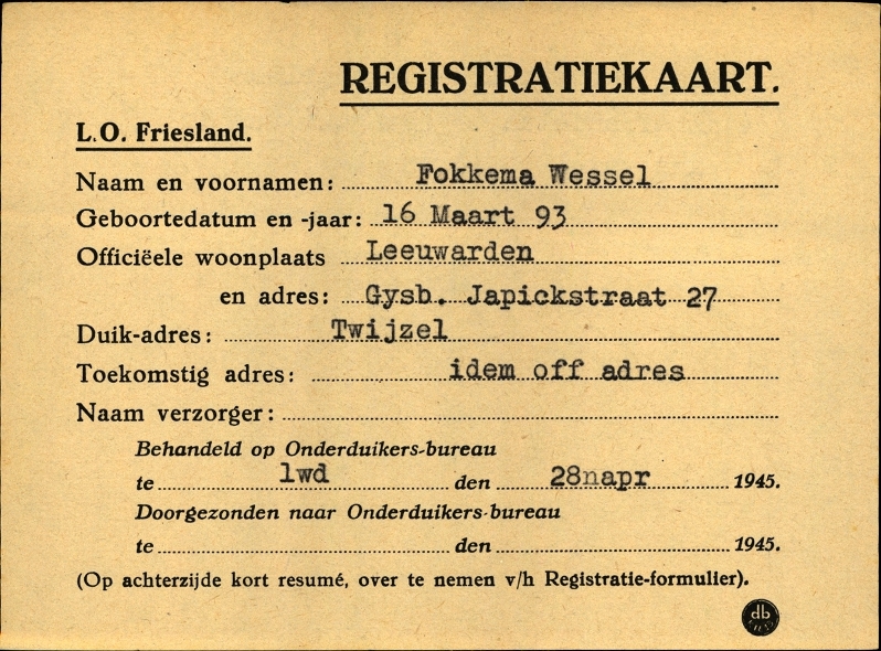 Onderduikinschrijving van Wessel Fokkema