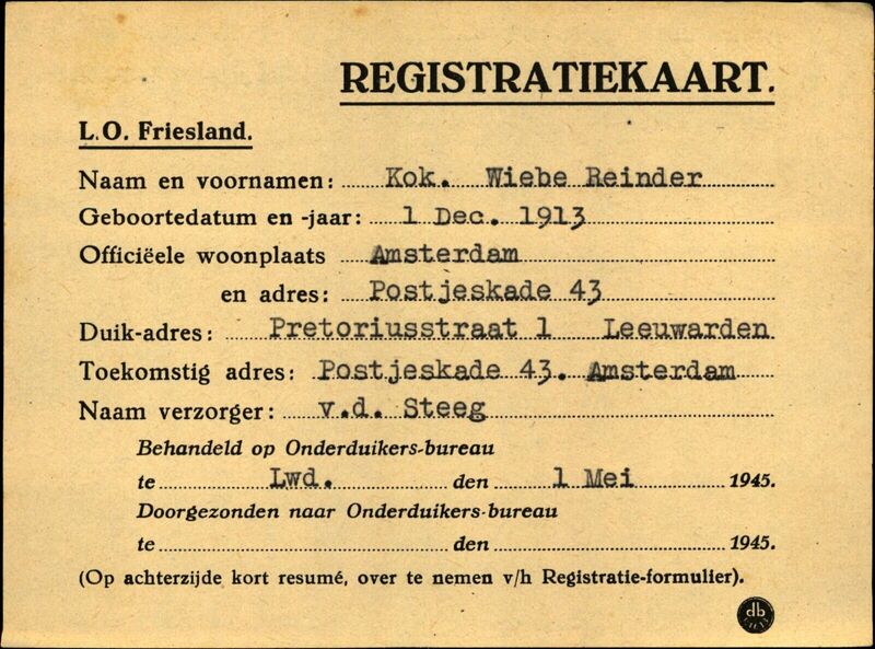 Onderduikinschrijving van Wiebe Reinder Kok