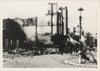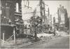 Burgers lopen bij verwoeste gebouwen na het bombardement op Rotterdam van 14 mei 1940.